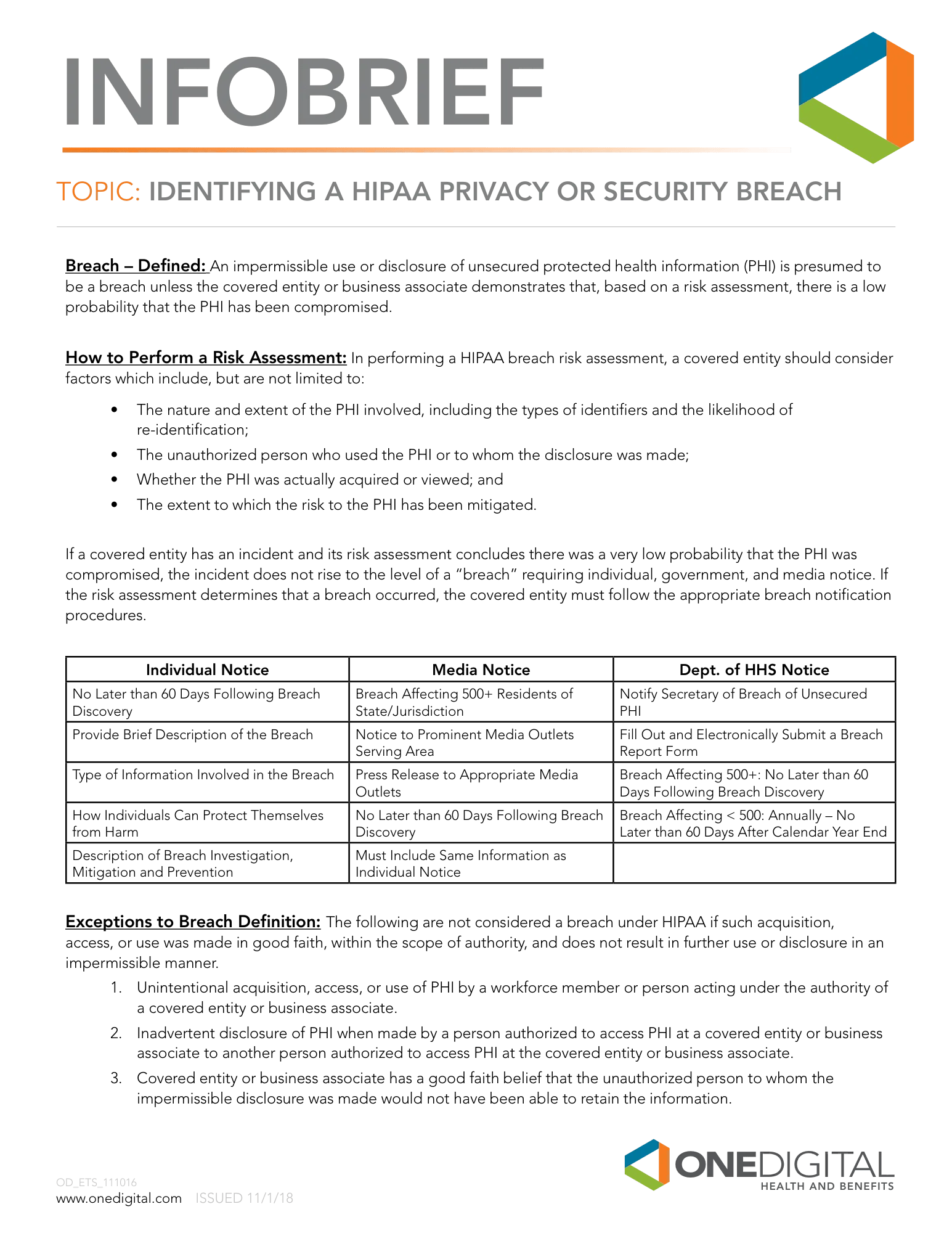 DOWNLOAD THE INFOBRIEF: Identifying a HIPAA Privacy or Security Breach