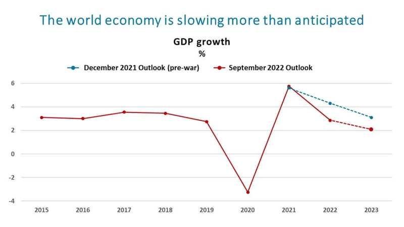 Compared to OECD forecasts from last year, before Russia’s aggression against Ukraine, global GDP is now projected to be at least $2.8 trillion lower (USD) in 2023.