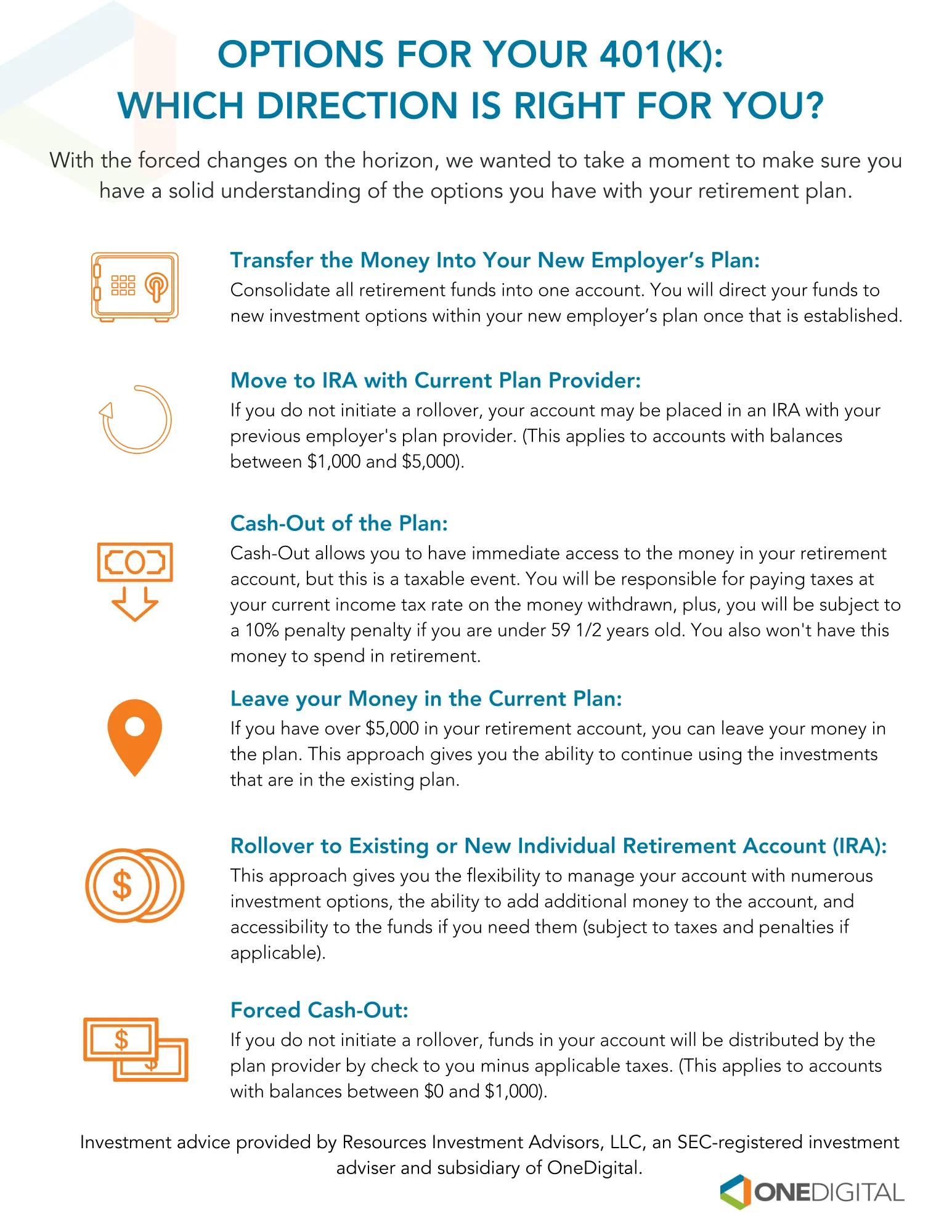 - Leave the money in the current plan