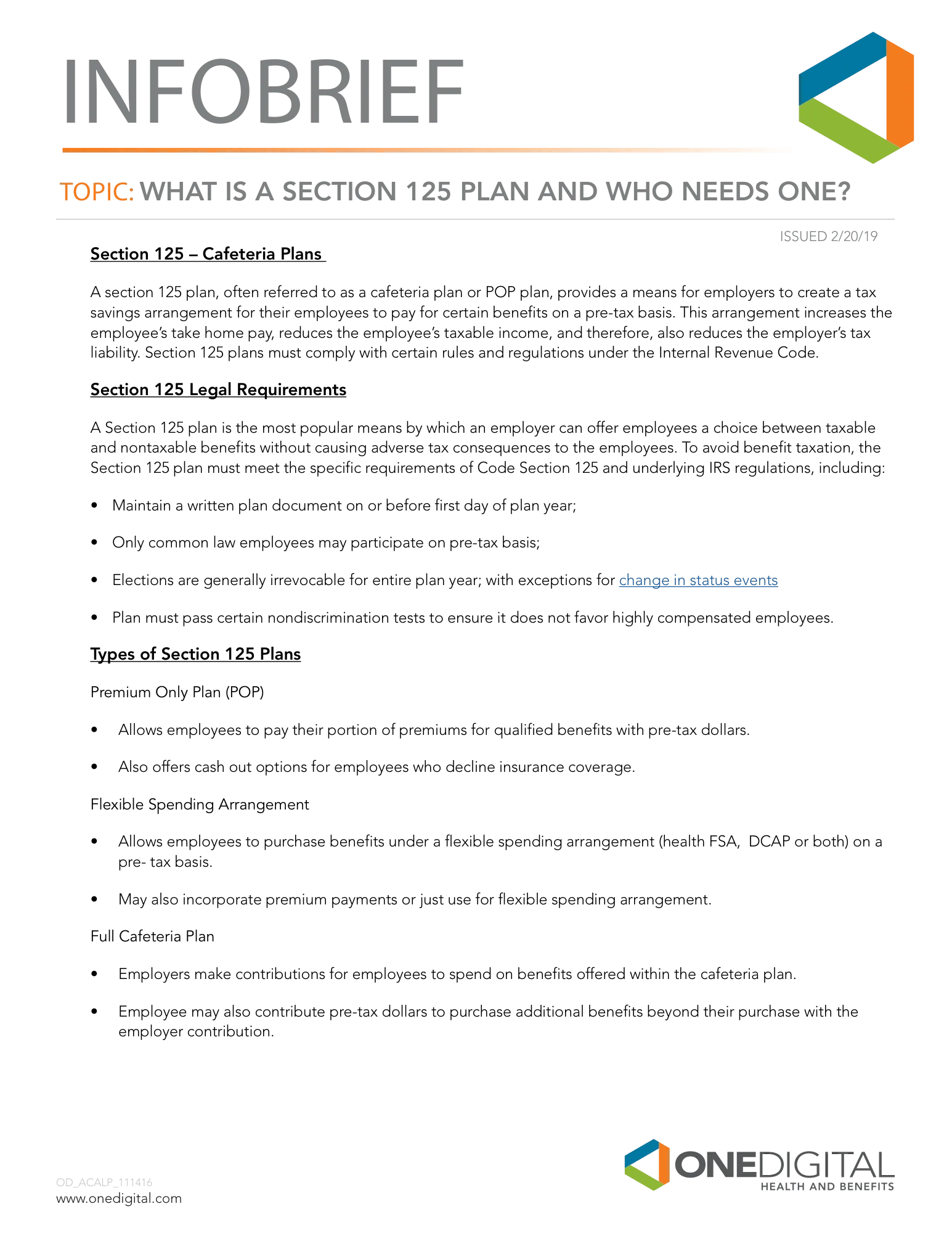 DOWNLOAD THE INFOBRIEF: What is a Section 125 Plan and Who Needs One?